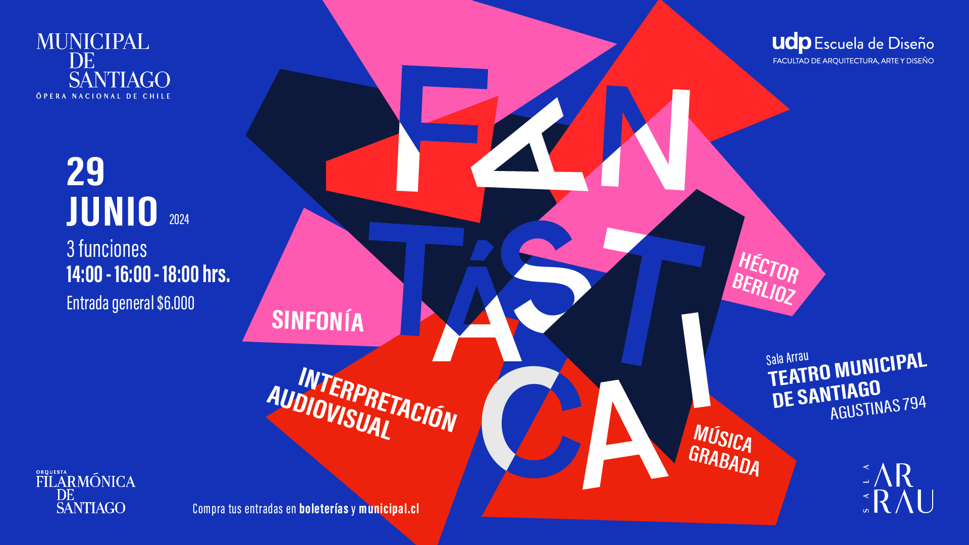 Por tercer año consecutivo se realizará este proyecto de mapping experimental, desarrollado por el Taller de Diseño Gráfico de los académicos Camilo Zúñiga y Antonieta López y el curso de Animación Digital dirigido por Valentina Vega de la Escuela de Diseño UDP, las que serán proyectadas en los muros de la Sala Arrau acompañadas por la “Sinfonía fantástica”, interpretada y grabada por la Orquesta Filarmónica de Santiago bajo la batuta de Pedro-Pablo Prudencio.