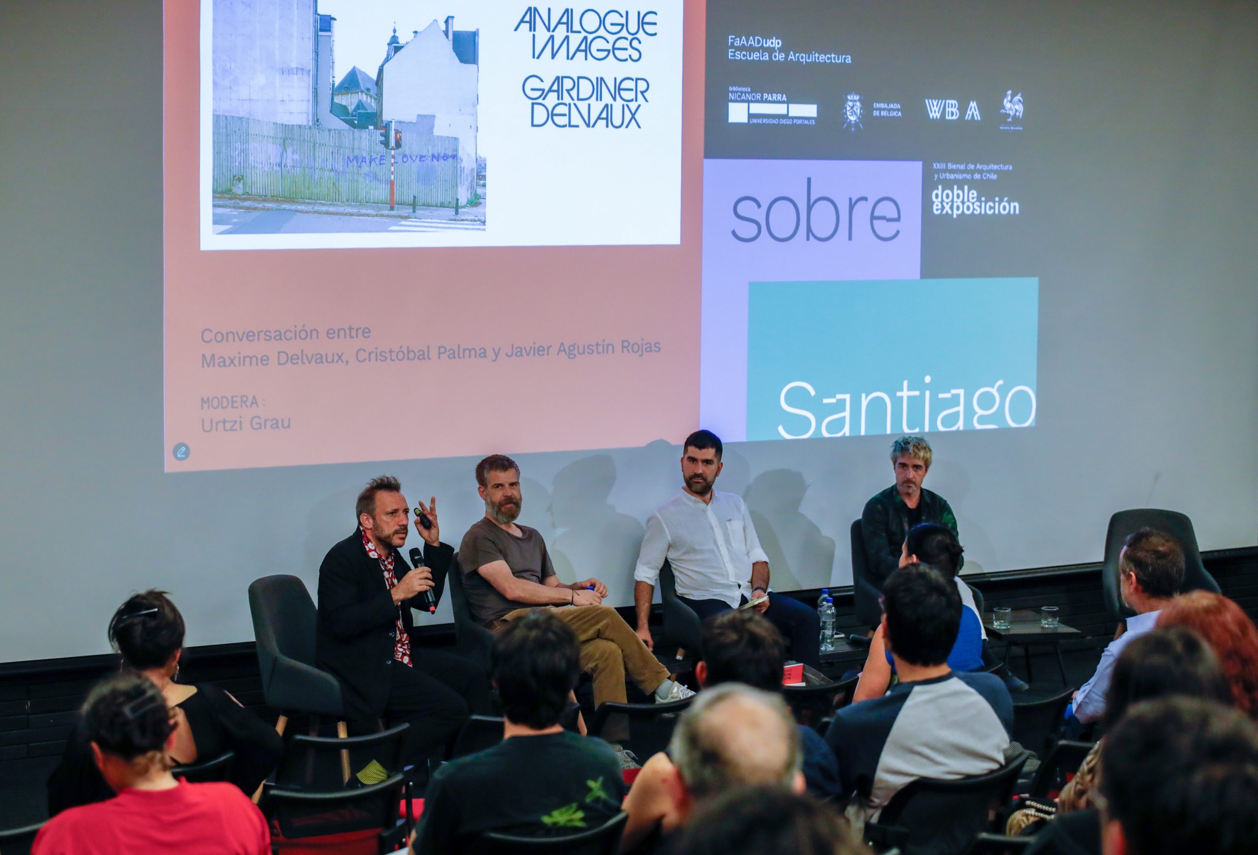La conversación fue moderada por el propio Grau y Reunión a Delvaux , Palma y Rojas , quienes reflexionaron sobre el oficio del fotógrafo de arquitectura, la tensión entre lo técnico y lo artístico, y la forma en que las imágenes influyen de la manera en que se perciben los espacios contemporáneos. Los participantes destacaron además el rol de la fotografía como un lenguaje de mediación entre el proyecto arquitectónico y su interpretación pública, en un contexto dominado por los soportes digitales y las redes sociales.