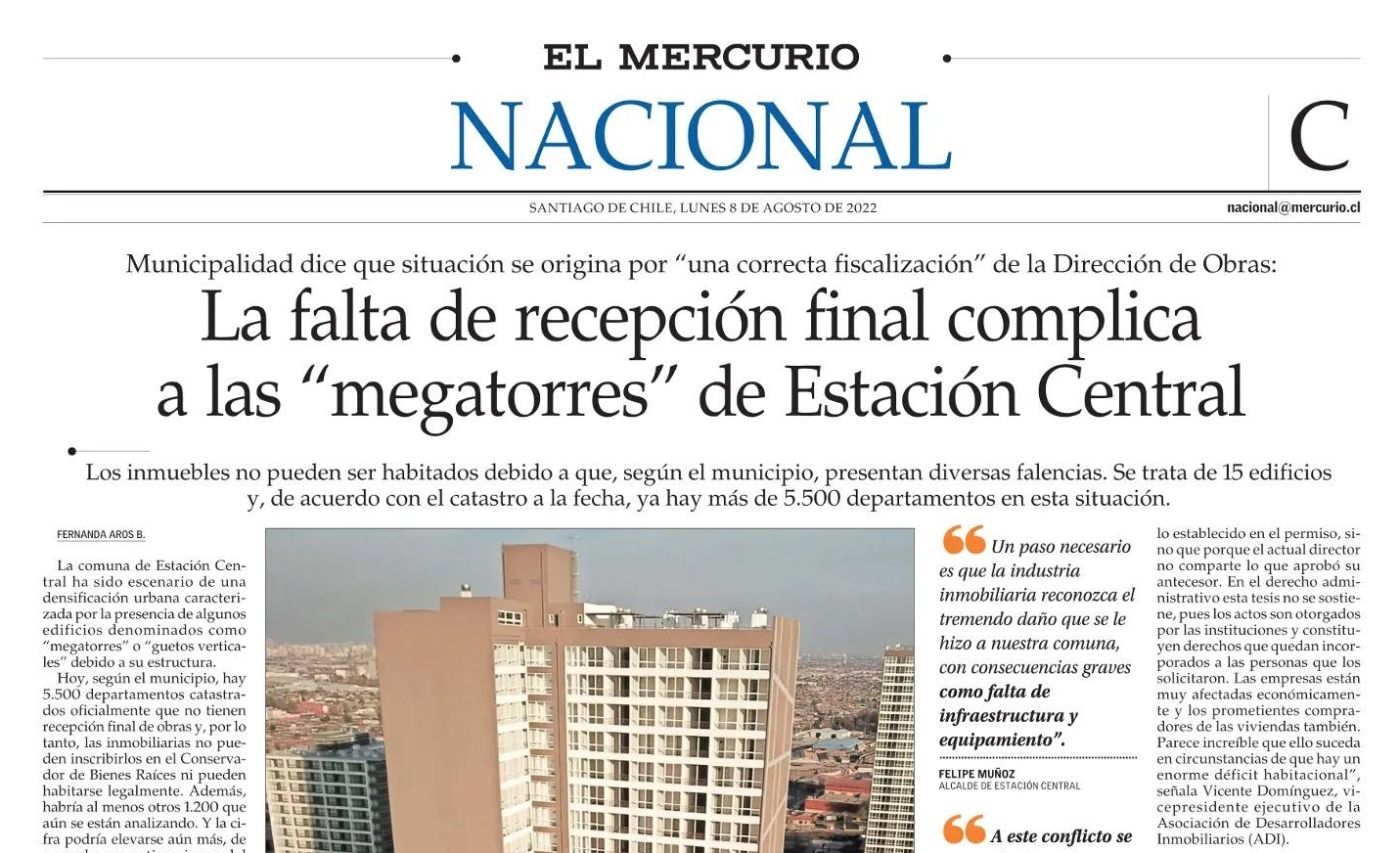 Noticia La falta de recepción final complica a las “megatorres” de Estación Central, comenta Elizabeth Wagemann 08 / 08 / 2022