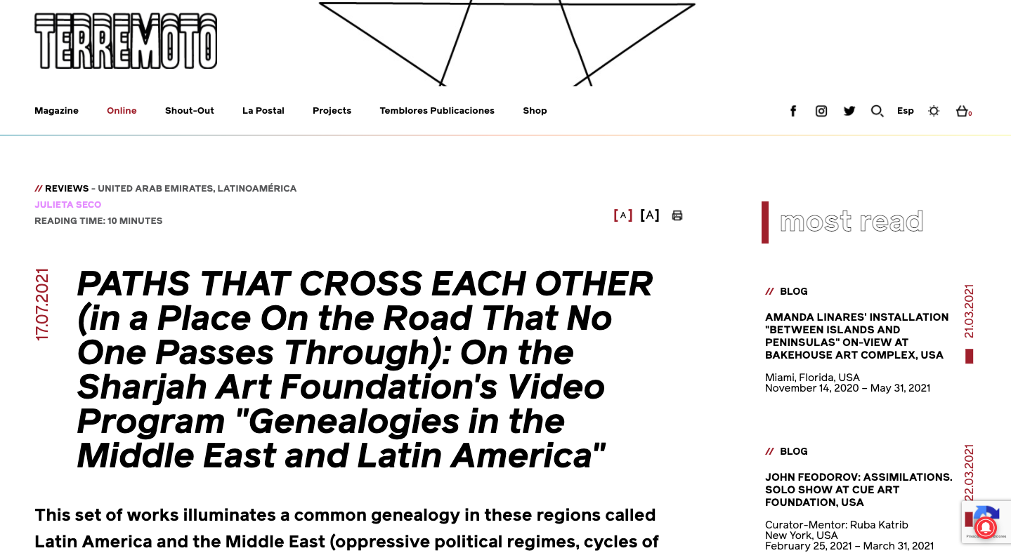 Noticia PATHS THAT CROSS EACH OTHER (in a Place On the Road That No One Passes Through): On the Sharjah Art Foundation’s Video Program “Genealogies in the Middle East and Latin America” 22 / 07 / 2021